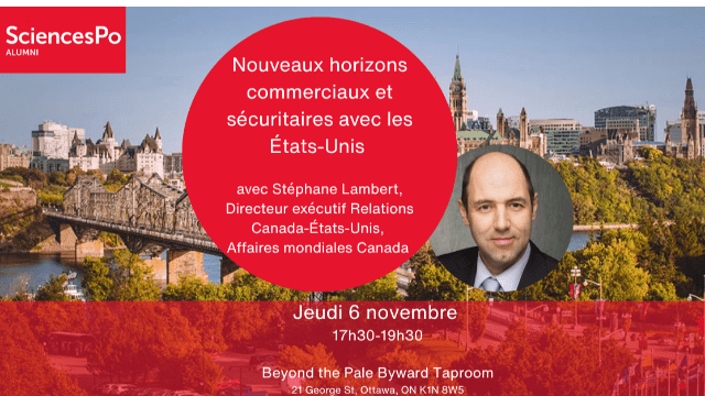 Merci à Stéphane Lambert de ses observations lors d'un récent Pot-Thématique entre alumni d'Ottawa. Stéphane est de retour au Canada après 7 ans en Europe dont les quatre dernières années comme ministre-conseiller à l'Ambassade du Canada à Paris. Les négociations sur l'accord Union Européenne-Canada ont fait partie de ses fonctions outre-mer. Stéphane a fait valoir la tradition de négociations Canada-États-Unis, basée sur des centaines de traités.