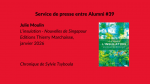 Ce jury a exploré les 348 titres de la rentrée littéraire d’hiver et remercie notamment les maisons d’édition qui ont fait des envois. Le choix n’a pas été simple, mais le jury a proposé au vote des Alumni une liste de douze livres, qui montrent que la littérature n’hésite pas à s’emparer de thèmes très actuels et polémiques, en offrant une diversité salutaire de regards et en montrant la vitalité de la langue française.