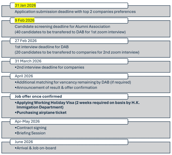 • Shortlisted candidates will be successively invited to interview and matching companies. Subject to the consideration / confirmation from the prospective employers, nominated applications will be notified via email confirmation by or before April 2026.