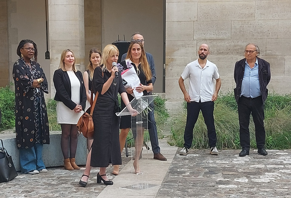 Charlène Guinoiseau, Madeleine Clanet, Marin de Viry, membres du jury, Jessica Nelson, présidente du jury, et Emilie Desvaux, lauréate de la deuxième édition, lors de la remise du prix le 3 juin 2025Jessica Nelson, présidente du jury, et Hemley Boum, lauréate de la première édition, lors de la remise du prix le 4 juin 2024 - Photo Elisabetta Lamanuzzi