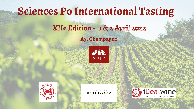 L’Association étudiante d’œnologie de Sciences Po Paris, In Vino Veritas, organisera les 1er et 2 Avril 2022 le Sciences Po International Wine Tasting (SPIT) pour sa douzième édition avec Bollinger.