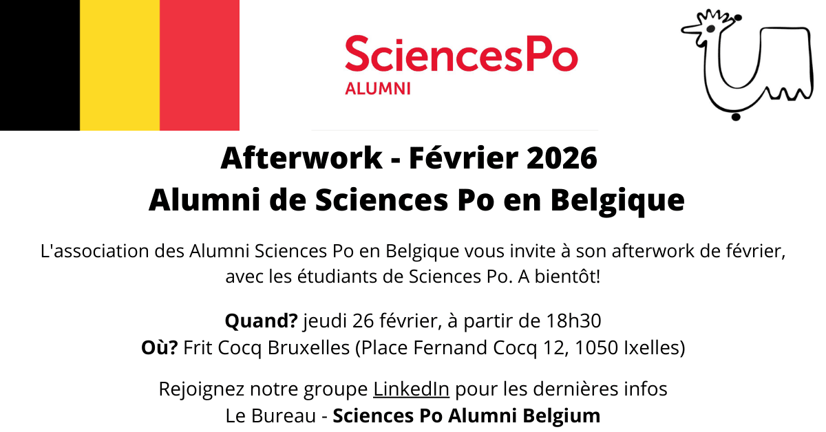 🍻 Rejoignez-nous pour le premier afterwork de 2026 de Sciences Po Alumni Belgium! Les étudiants en master de Sciences Po en voyages d'études seront présents, venez leur donner vos meilleurs conseils!