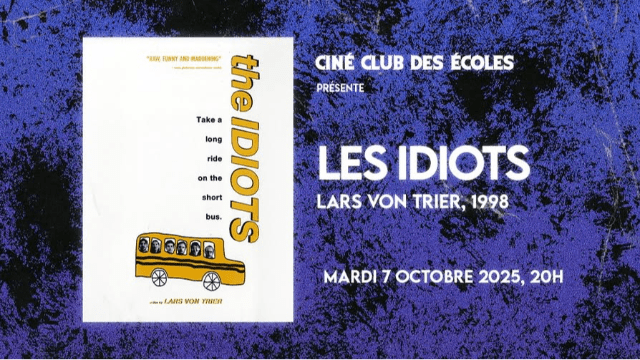Le Ciné-Club des Ecoles est heureux de vous retrouver pour une toute nouvelle saison de cinéma au Grand Action ! À l'affiche de cette deuxième soirée : Les Idiots de Lars Von Trier (1998).