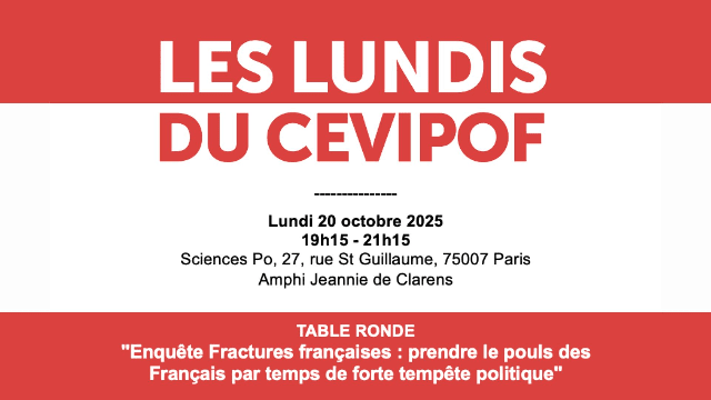 Les Lundis du CEVIPOF – Présentation de l'Enquête Fractures françaises : prendre le pouls des Français par temps de forte tempête politique