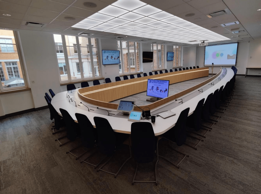 Petit déjeuner dans la salle du conseil de la Fédération Nationale du Crédit Agricole